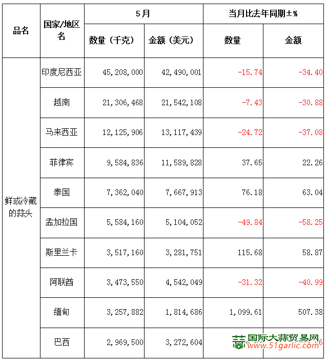 5月份大蒜出口量,同環(huán)比均大幅下降!