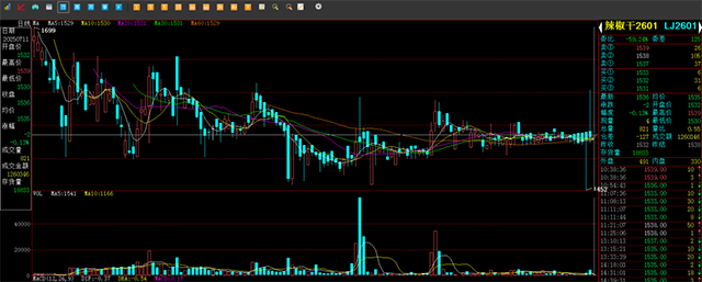 當(dāng)現(xiàn)貨市場還陷在僵局中,電子盤的反應(yīng)卻總能快一步,華夏國際辣椒干電子盤的LJ2601合約在七月上旬就有了動作:盤面跌至1452點(diǎn),精準(zhǔn)釋放了市場對“南澇北旱”的擔(dān)憂。
