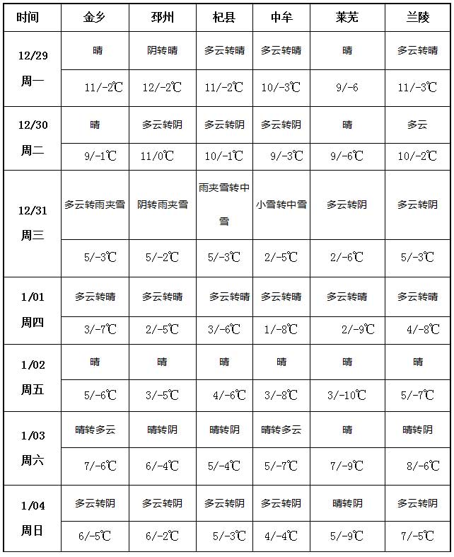 本周(12月29日至1月4日),金鄉(xiāng)、邳州、杞縣等大蒜主產(chǎn)區(qū)受冷空氣影響,天氣將出現(xiàn)冷暖大反轉(zhuǎn),局部地區(qū)周內(nèi)有降水。前期(12月29日至12月30日)以晴或多云為主,氣溫多在-2℃至12℃,整體偏暖;12月31日天氣波動明顯,多地出現(xiàn)雨夾雪、小雪轉(zhuǎn)中雪等降水天氣,氣溫驟降至-5℃至5℃;元旦過后,產(chǎn)區(qū)氣溫逐步回升,天氣以晴或多云為主。