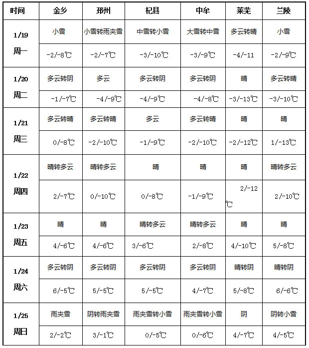 本周(1 月 19 日 - 25 日)金鄉(xiāng)、邳州、杞縣、中牟、萊蕪、蘭陵等大蒜主產(chǎn)區(qū)天氣呈現(xiàn)顯著的階段性波動(dòng):1 月 19 日(周一)率先迎來大范圍雨雪天氣,中牟出現(xiàn)大雪轉(zhuǎn)中雪,杞縣為中雪轉(zhuǎn)小雪,金鄉(xiāng)、蘭陵飄起小雪,邳州則是小雪轉(zhuǎn)雨夾雪,僅萊蕪以多云轉(zhuǎn)晴為主,當(dāng)日氣溫跌入嚴(yán)寒區(qū)間,最高溫僅 - 2~-4℃,最低溫普遍在 - 7~-11℃;1 月 20 日 - 23 日(周二至周五),天氣逐步轉(zhuǎn)好,多地由多云轉(zhuǎn)陰或轉(zhuǎn)晴,萊蕪、蘭陵維持晴好天氣,氣溫先抑后揚(yáng),20-21 日最高溫仍在 - 1~1℃徘徊,最低溫甚至跌至 - 13℃,22-23 日最高溫回升至 0~5℃,蘭陵最高達(dá) 5℃,光照條件明顯改善;1 月 24 日 - 25 日(周六至周日),產(chǎn)區(qū)再次迎來雨雪降溫,金鄉(xiāng)、邳州出現(xiàn)雨夾雪,杞縣、中牟為雨夾雪轉(zhuǎn)小雪,蘭陵由陰轉(zhuǎn)小雪,僅萊蕪為陰天,氣溫大幅回落,最高溫降至 2~4℃,最低溫在 - 1~-7℃區(qū)間波動(dòng)。
