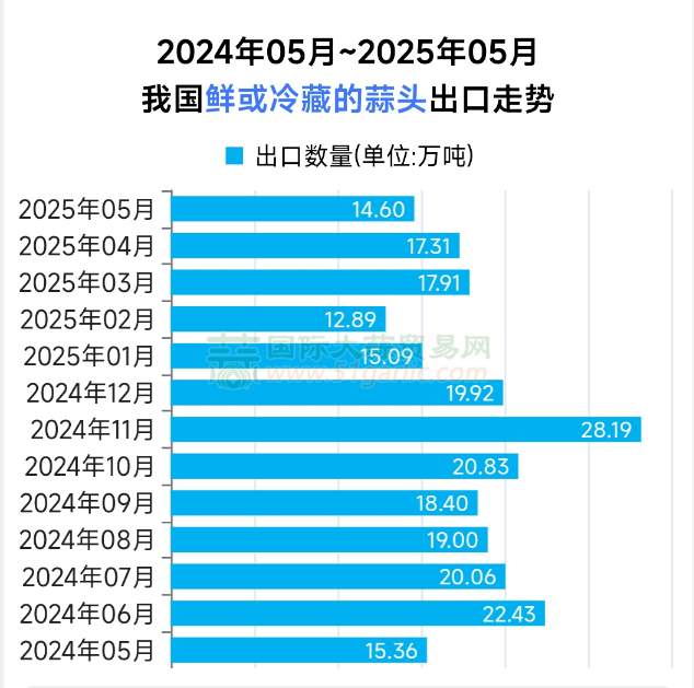 5月份大蒜出口量,同環(huán)比均大幅下降!