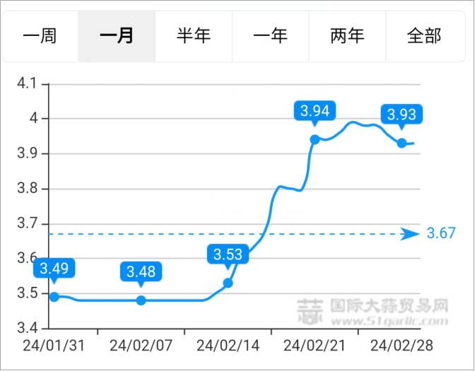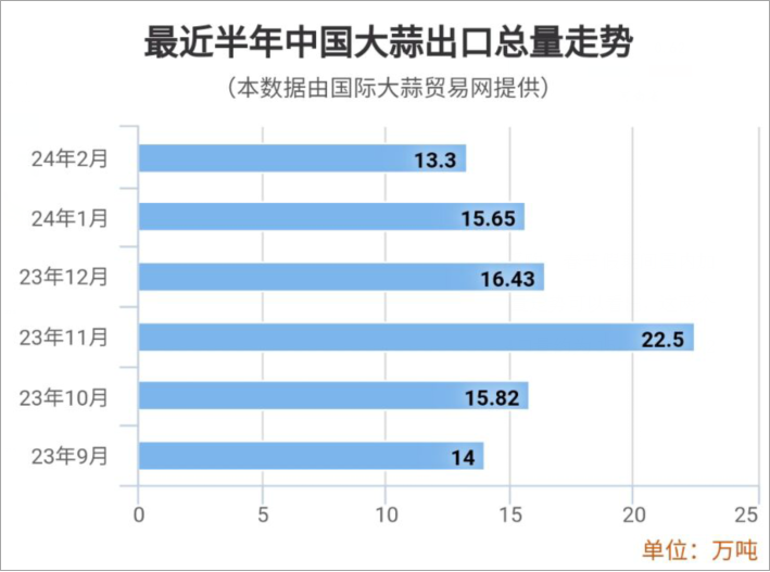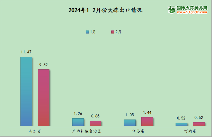 2024年1-2月大蒜出口同比上漲