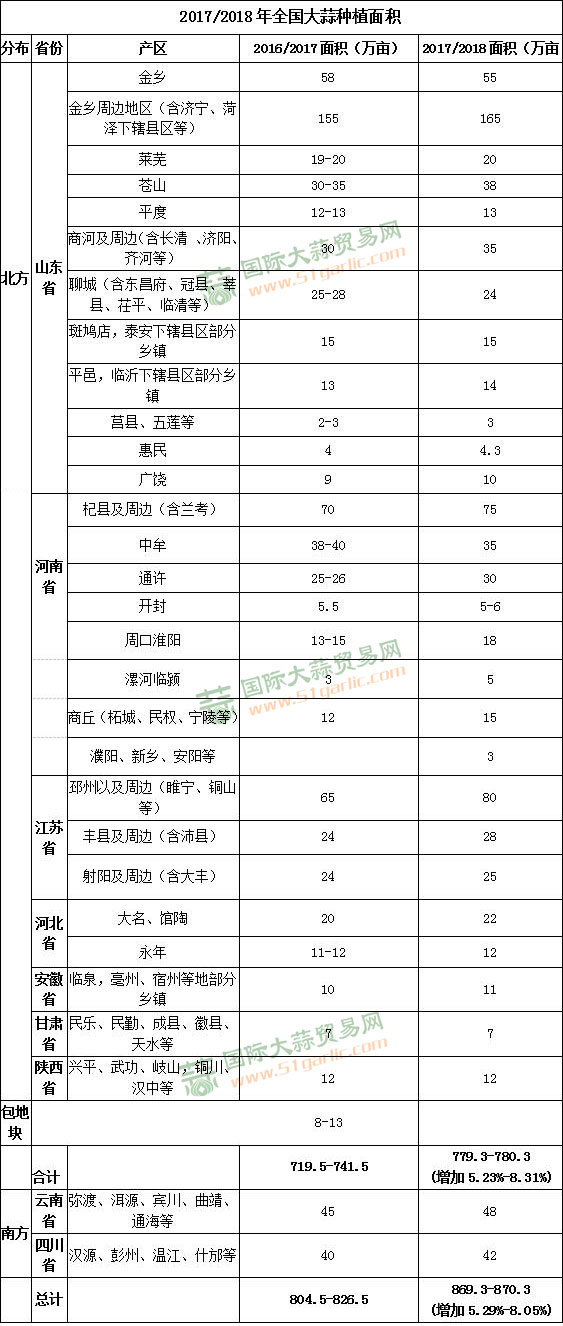 2017-2018年度全國(guó)大蒜種植面積統(tǒng)計(jì)